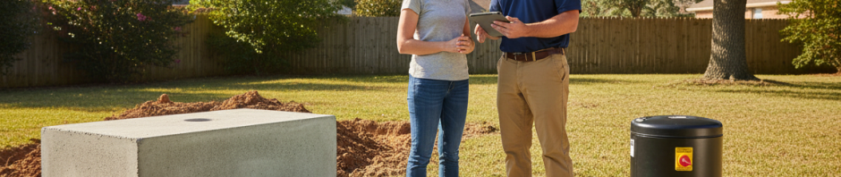 Make sure the required county health department permits are secured before the project starts. Plan for temporary water restrictions during excavation. Most projects proceed through site evaluation, soil testing, permitting, excavation, tank installation, and final project steps. The schedule will vary depending on weather, soil, and unexpected subsurface conditions. Tank material should be selected with local code, site conditions, and available warranty coverage in mind.